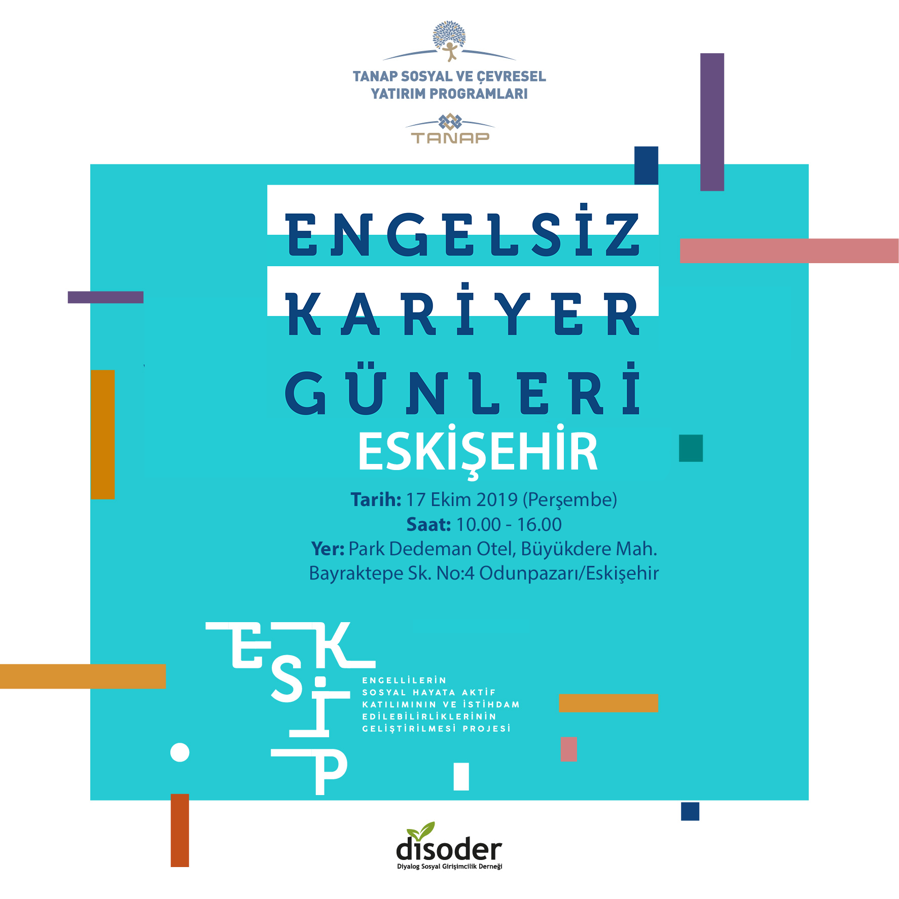 TANAP Sosyal ve Çevresel Yatırım Programları (SEIP) desteği ile Diyalog Sosyal Girişimcilik Derneği (DİSODER) tarafından sürdürülen, Engelsizkariyer.com, PERYÖN İç Anadolu Şubesi ve Eskişehir Büyük Şehir Belediyesi işbirliği ile Engellilerin Sosyal Hayata Aktif Katılımının ve İstihdam Edilebilirliklerinin Geliştirilmesi Projesi (ESKİP) kapsamında, 17 Ekim 2019 tarihinde Eskişehir'de Engelliler için Kariyer Günü’nü etkinliği düzenlenecek.